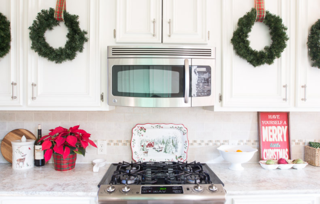 I kept the same style as last year, but added new elements to the kitchen. These include the decorations from HomeGoods, and the BH G Christmas tray from Walmart. These small details make your kitchen look cozy and festive during the holidays.