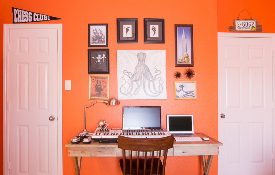 Today, I invite you to see our orange man’s room. It is a space that is full of creativity and energy. This room transformation was part Sherwin-Williams National Painting Week and it surprised me even more than I had expected.